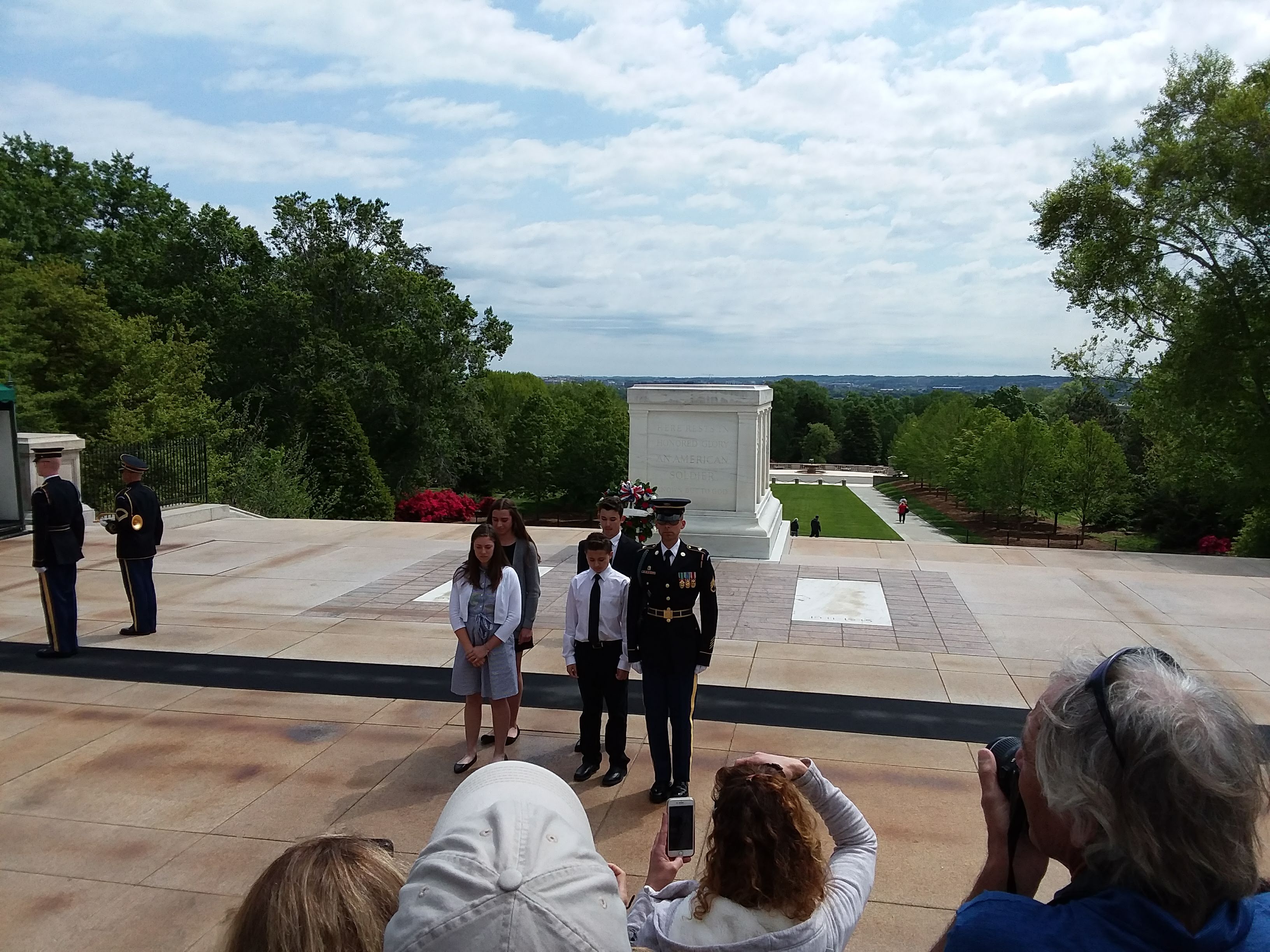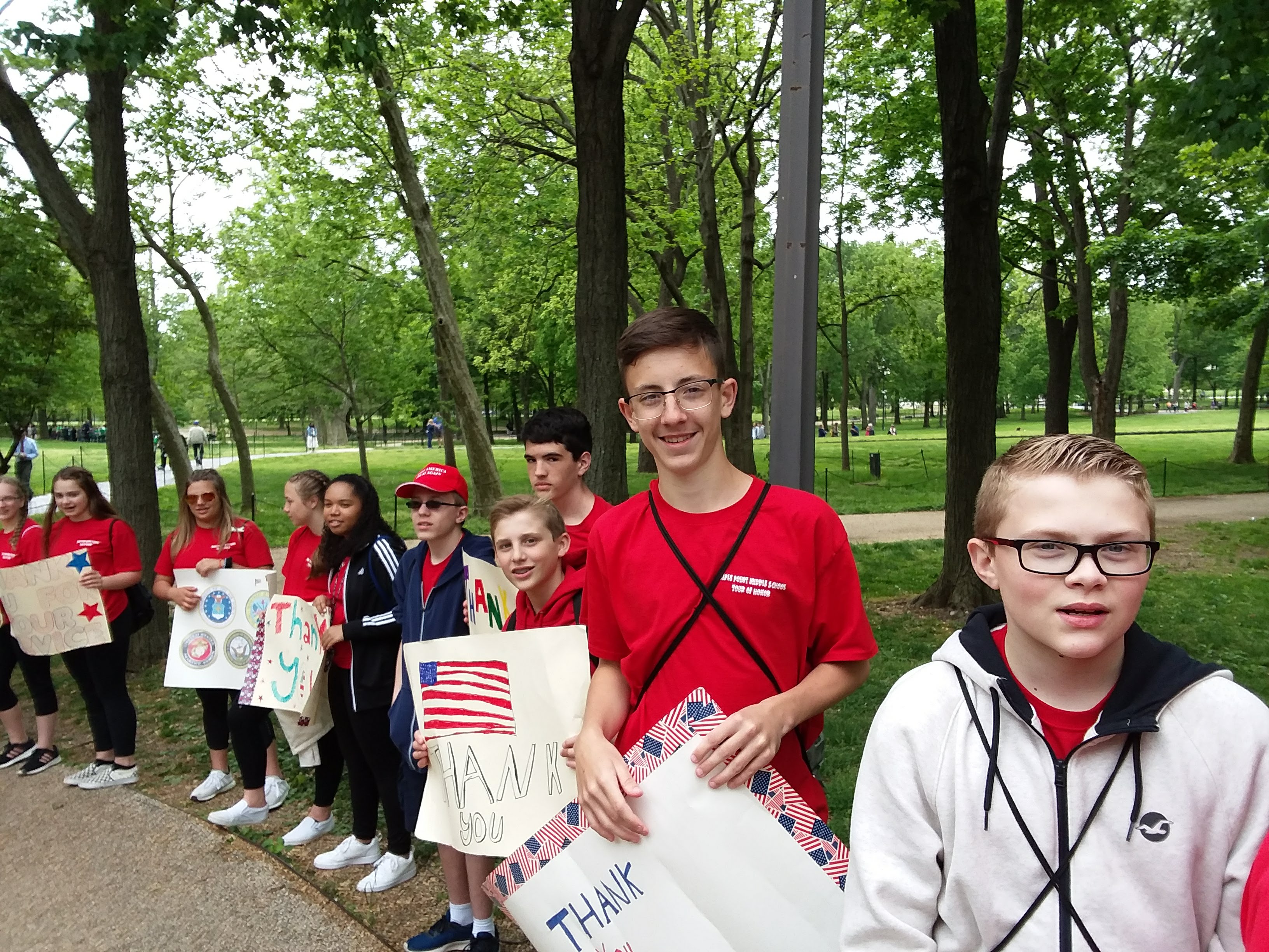 After Police Escort down 95, Washington Baltimore Parkway, and 495, got to World War 2 Memorial at 9:45.